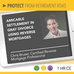 Buy now for $29 Overall Rating: Not yet rated Gray divorce—divorce after age 50—presents unique financial challenges that can significantly impact retirement security. This continuing education course equips financial planners with practical strategies to help divorcing clients reach amicable financial settlements using reverse mortgage solutions, including the Federal Housing Administration’s Home Equity Conversion Mortgage for …